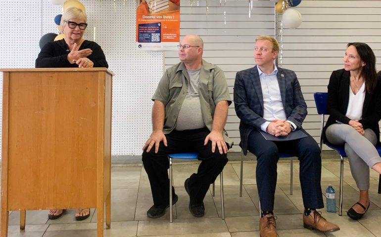 Gatineau, QC – Le mardi 23 septembre 2025, la Librairie Louis-Fréchette a annoncé officiellement que son centre de tri est devenu LE point de chute en Outaouais de la FICAP. L’événement s’est déroulé en présence des trois députés provinciaux Mathieu Lévesque (Chapleau), Robert Bussière (Gatineau), Suzanne Tremblay (Hull) ainsi que Monique Richard, la présidente de la Fondation des parlementaires québécois. Étaient aussi présents une quarantaine d’invités représentant divers organismes partenaires.